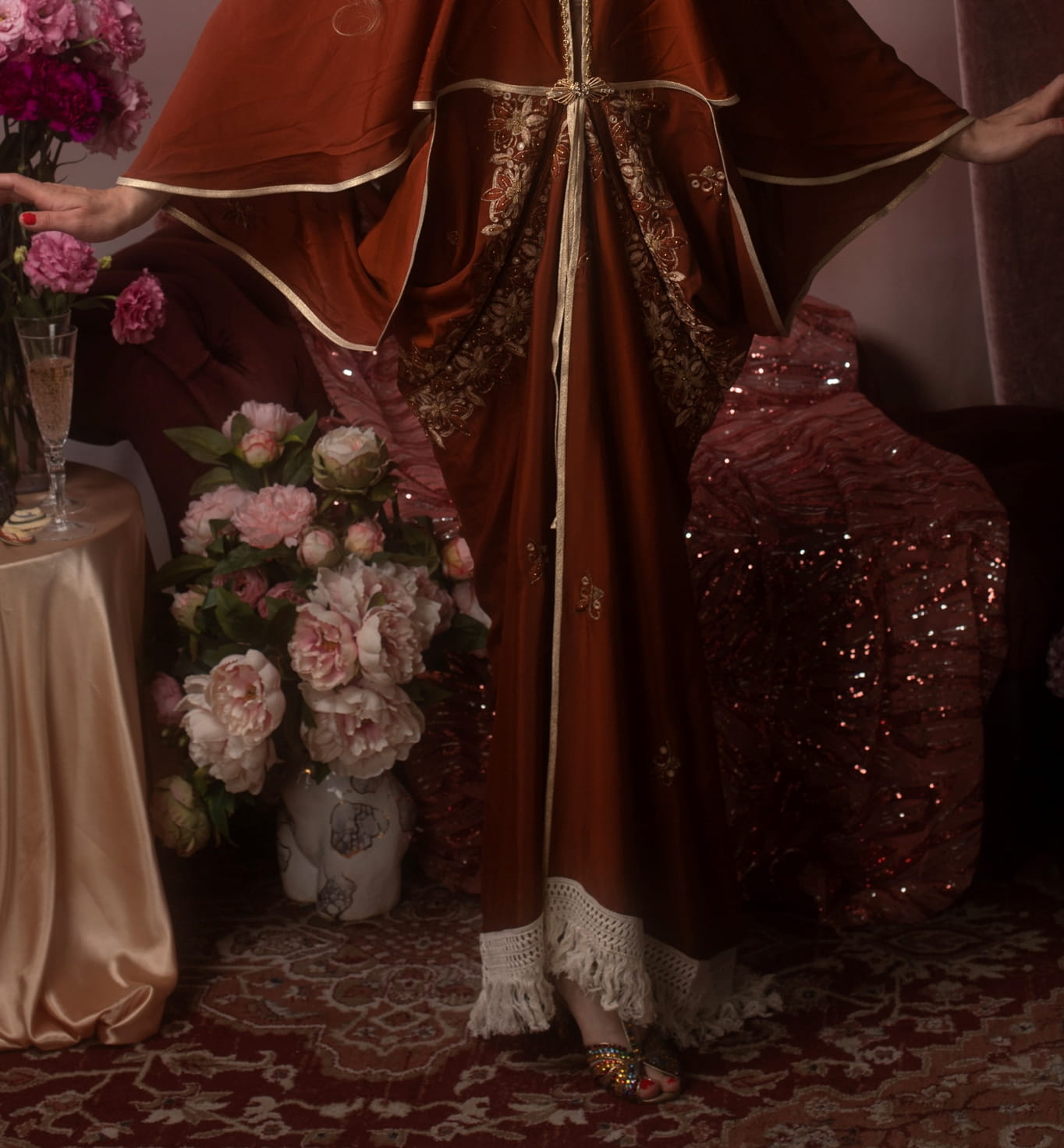 Rust & Gold Embroidered Bohemian Peignoir