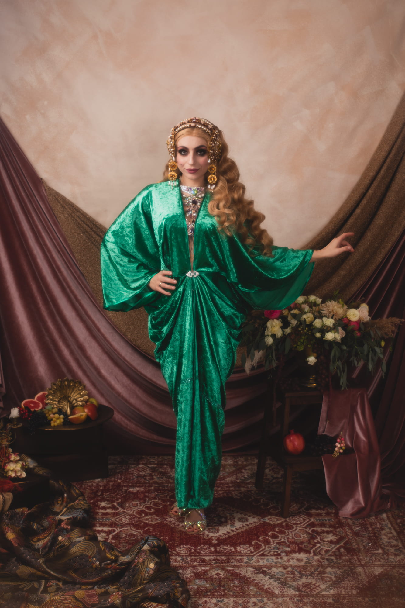 Velvet peignoirs are elegant and sensual cover-ups that combine the luxurious softness of velvet with timeless charm. Made from delicately shimmering fabric, they gracefully drape over the body, adding fluidity and poise to every movement. Perfect for the stage, photoshoots, or as part of a vintage glamour wardrobe, they highlight feminine elegance and classic sophistication.
