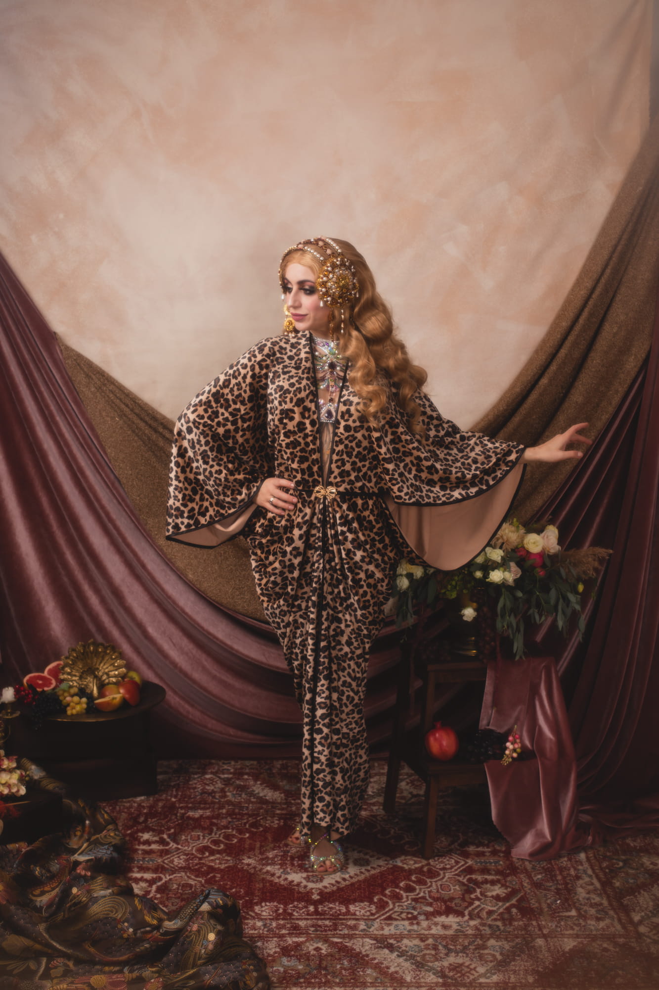 Leopard motif color Velvet Peignoir Gown 20s Art Deco