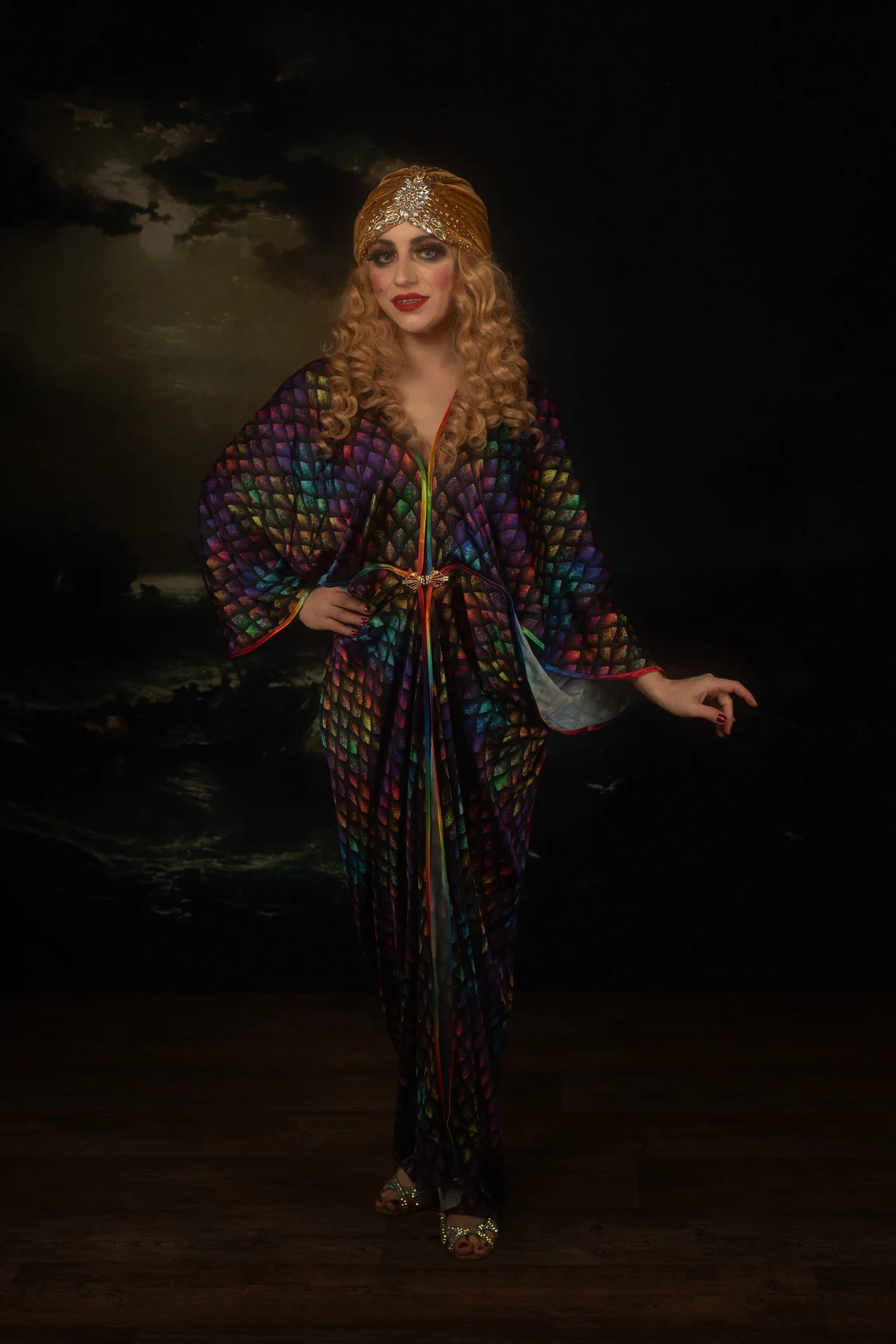 Multicolored Satin Peignoir Gown 20s Art Deco