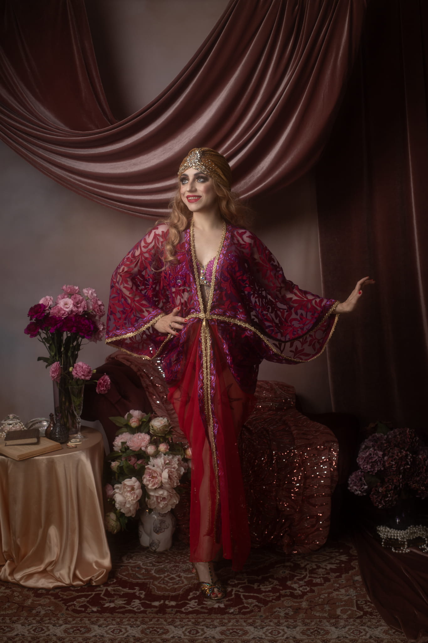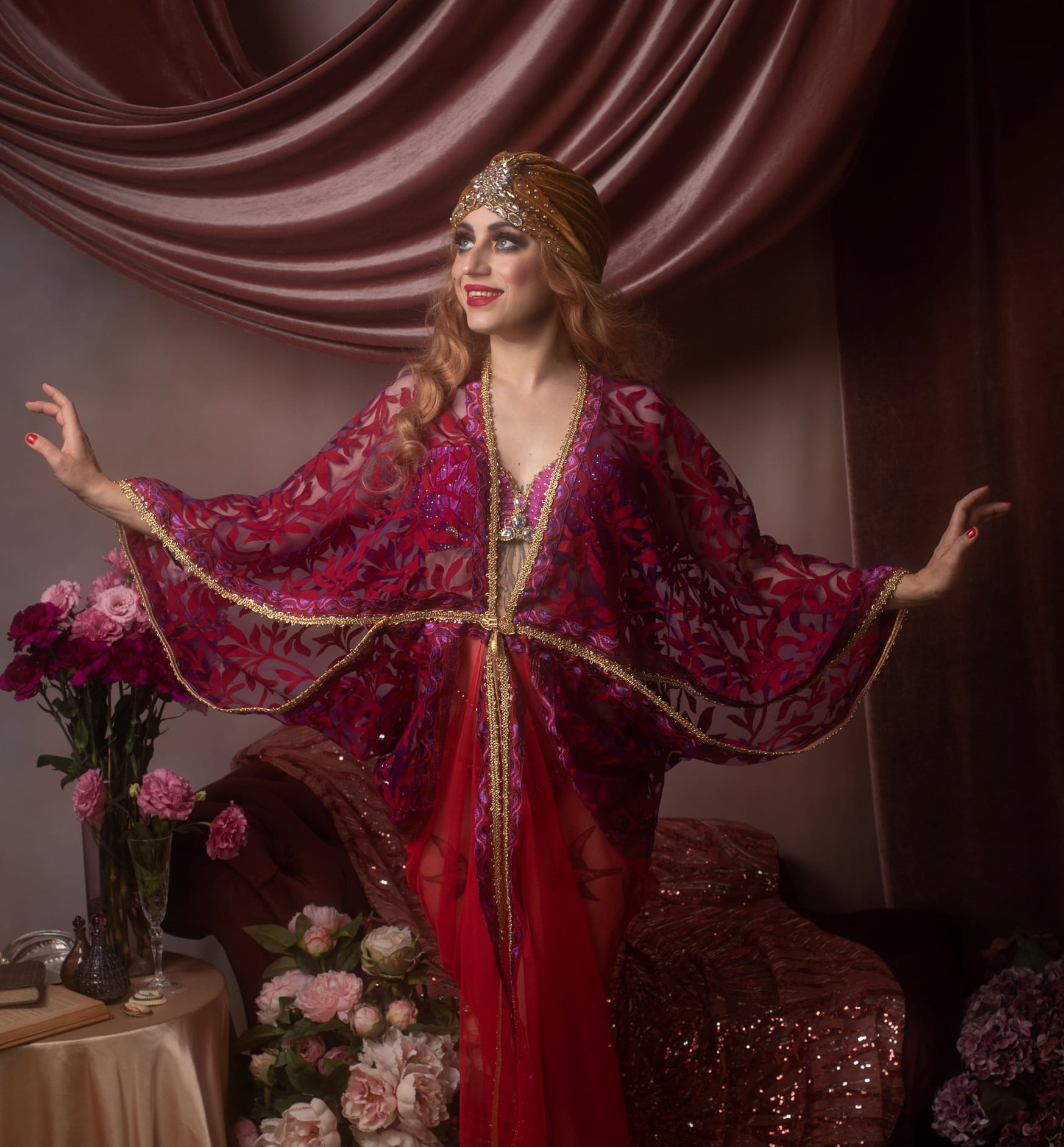 Romantic Red&Violet Art Nouveau Gown Robe Vintage-style S/M