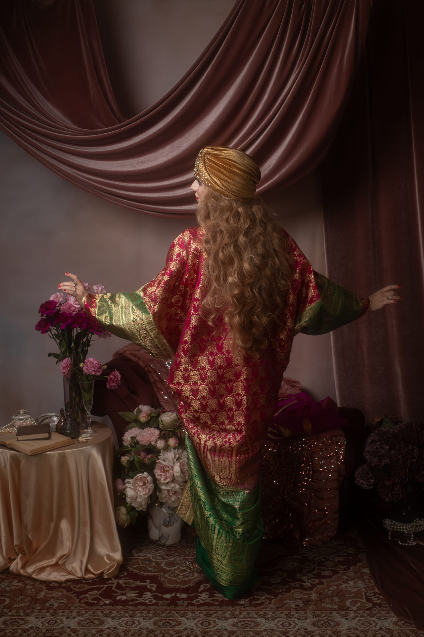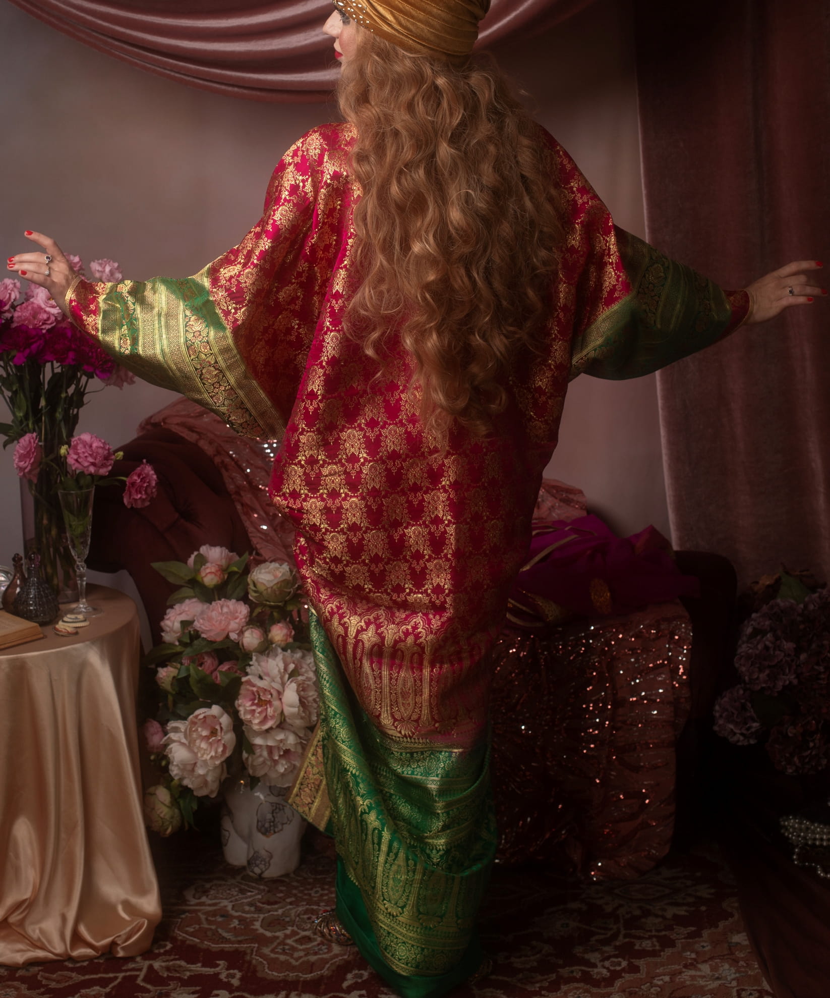 Royal Red & Green with Gold Ornamental Gown Robe Vintage-style S/M