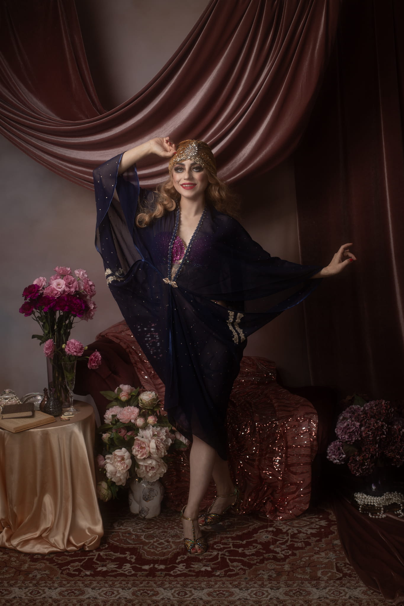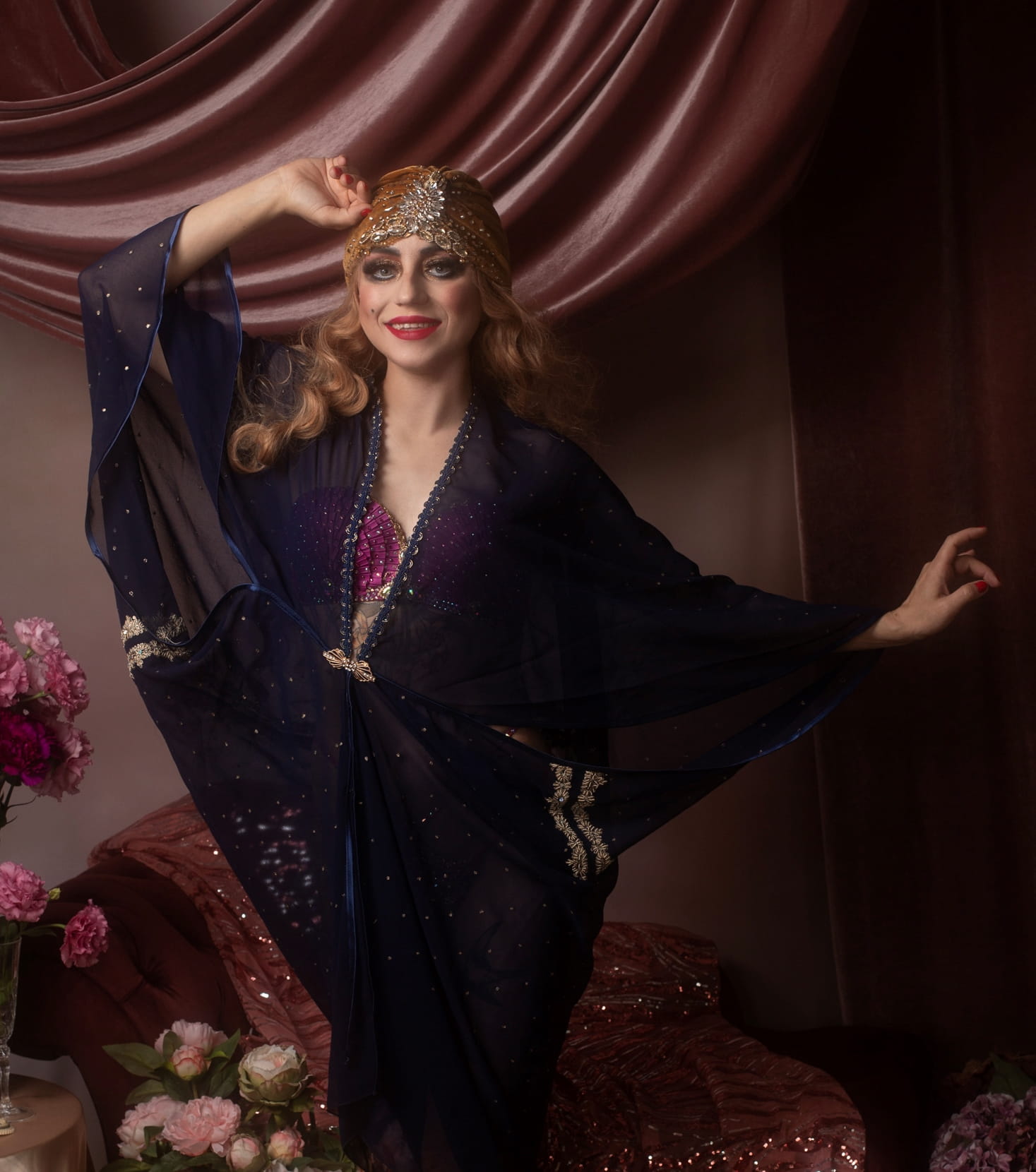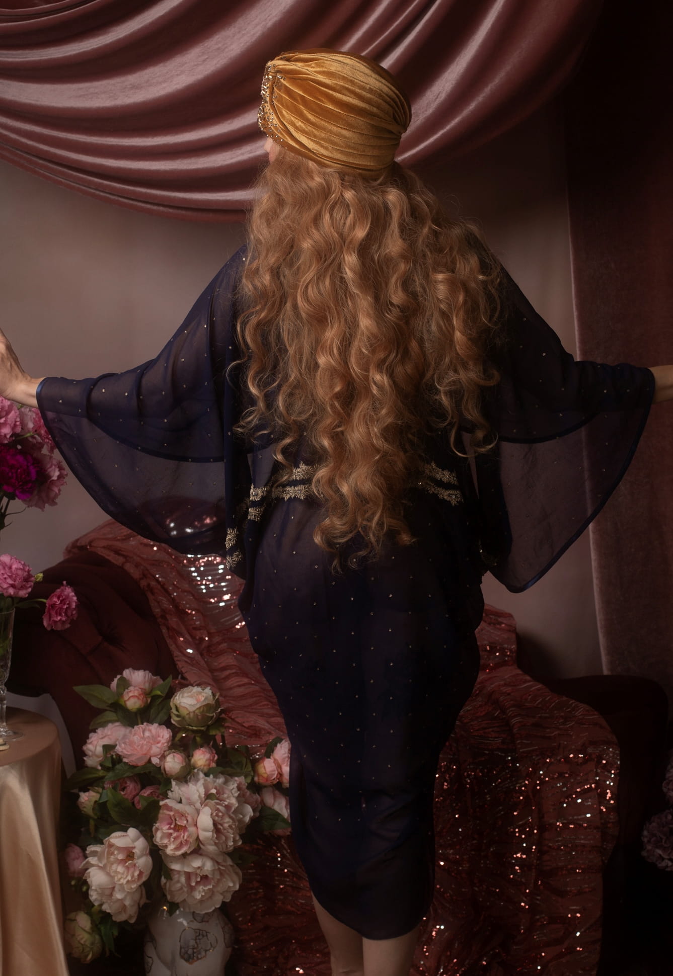 Short Navy & Gold Art Nouveau Gown Robe Vintage-style S/M