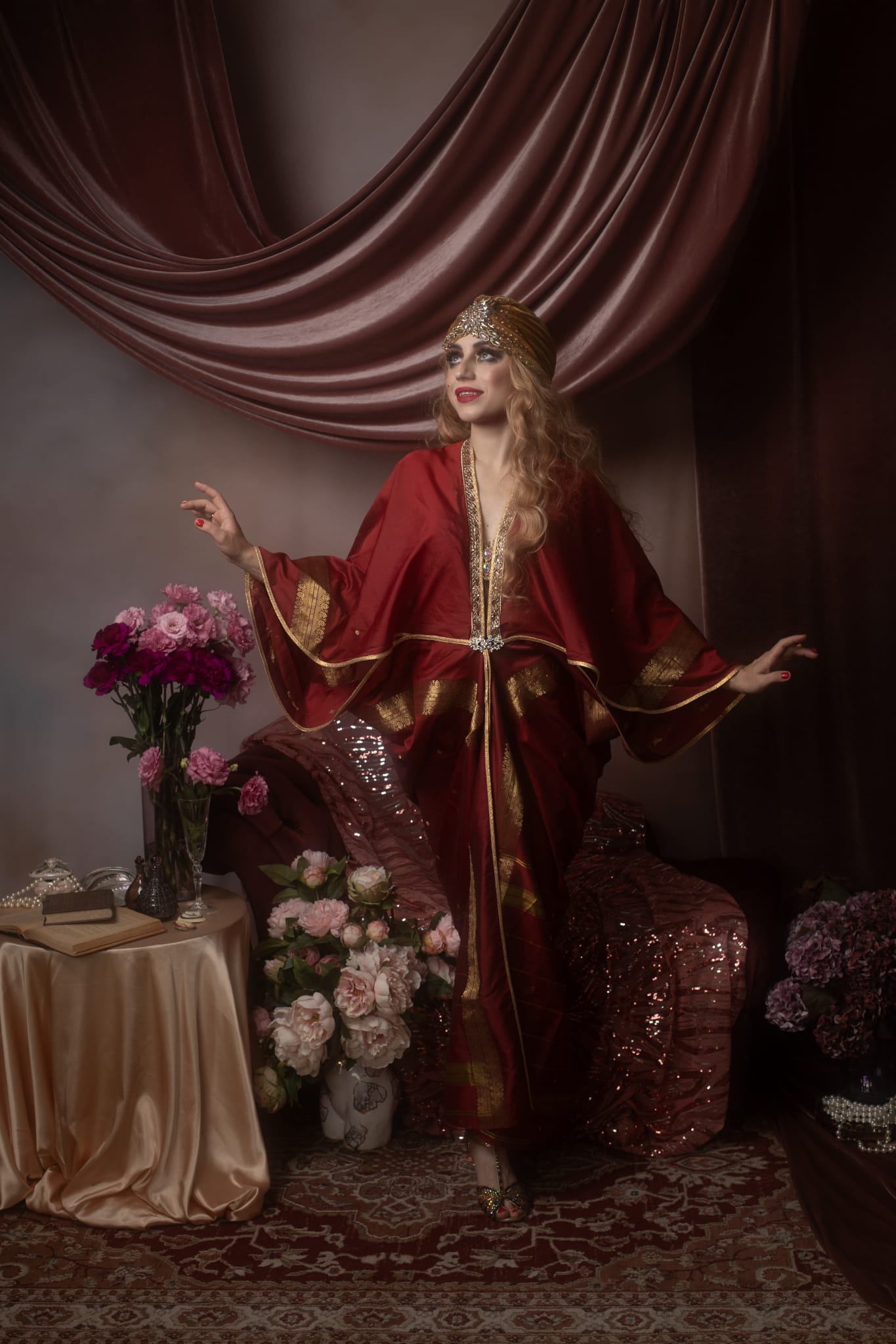 Vintage-style Red & Gold Ornamental Gown Robe S/M